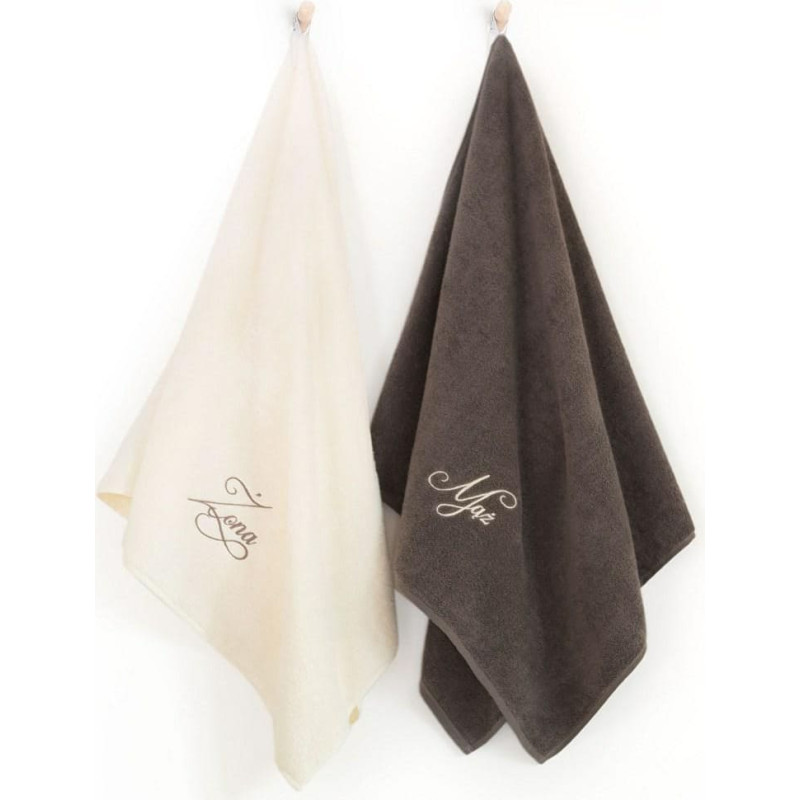 Jūsu iepirkumu grozs ir tukšs! Dvieļu komplekts kastītē 2gb Vīrs Sieva 70x130 ekru taupe brūns dāvanai