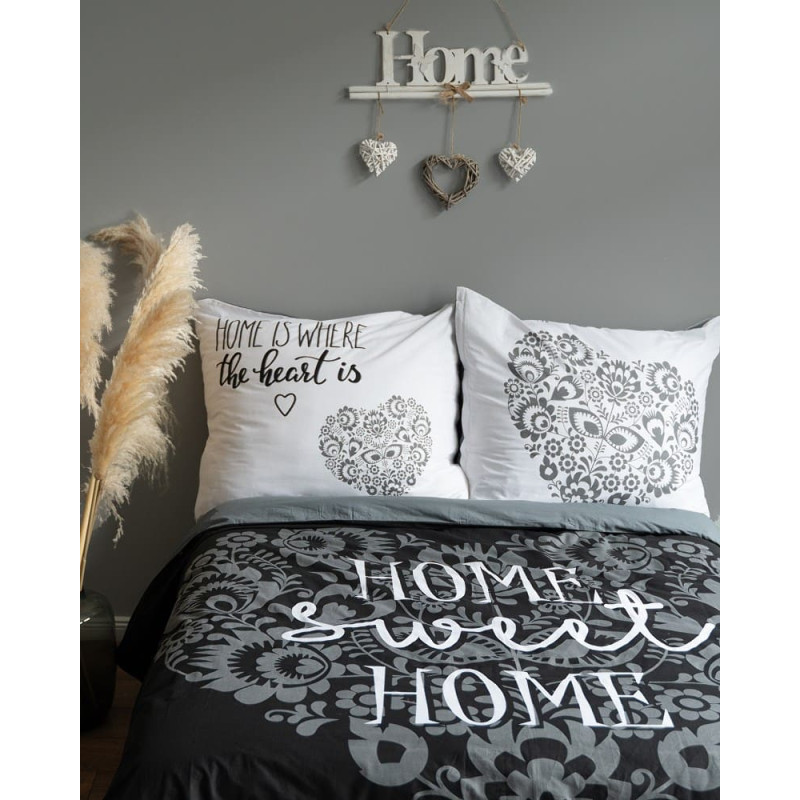 Jūsu iepirkumu grozs ir tukšs! Kokvilnas gultasveļa 160x200 Mājas saldie Mājas sirsniņas melni balti 3753 A Holland 78