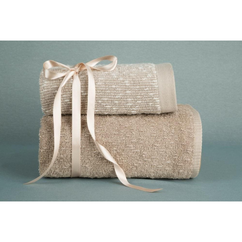 Jūsu iepirkumu grozs ir tukšs! Dvieļu komplekts 2gab Tamina bēšs brūns 50x90 70x140 550 g/m2