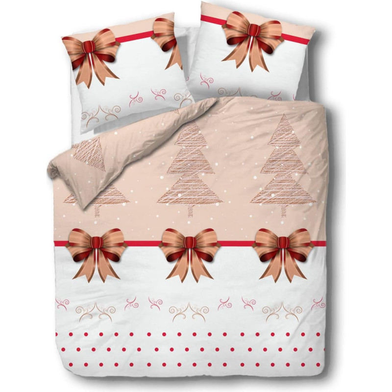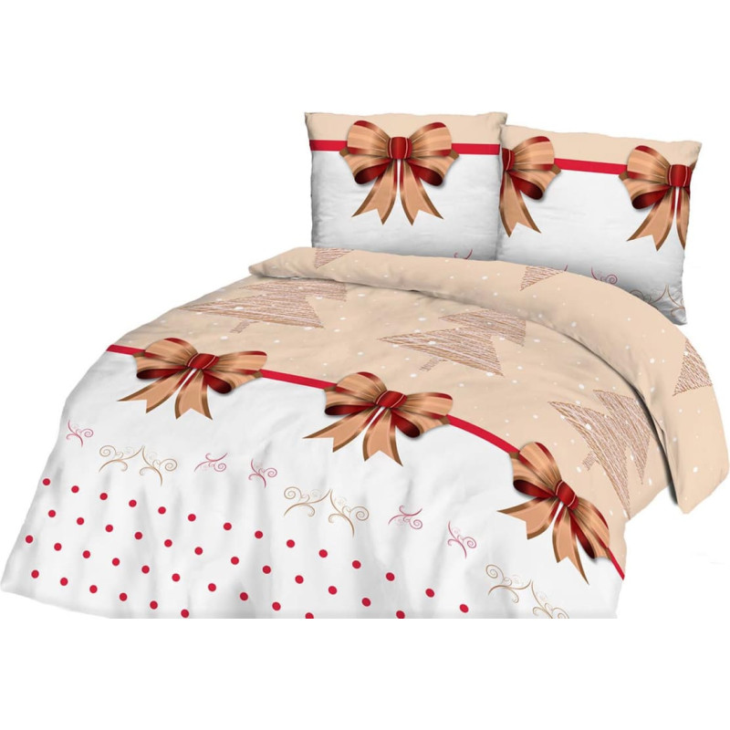 Jūsu iepirkumu grozs ir tukšs! Flaneļa gultas veļa 220x200 Ziemassvētku smilškrāsas sarkanas eglīšu bantes 31483/2
