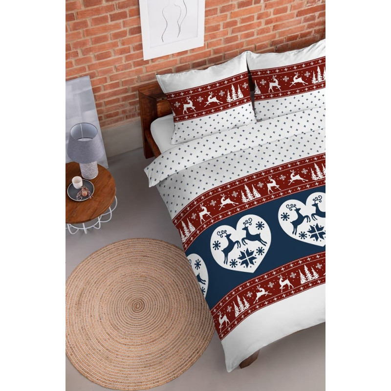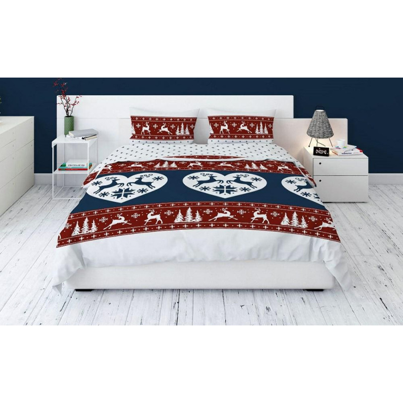 Jūsu iepirkumu grozs ir tukšs! Flaneļa gultasveļa 220x200 Ziemassvētku sarkanas tumši zilas ziemeļbriežu sirdis 4145 A Flanelis 2022