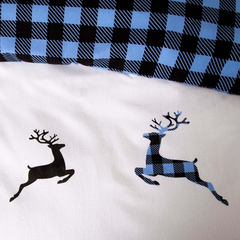 Jūsu iepirkumu grozs ir tukšs! Flaneļa gultasveļa 220x200 Ziemassvētku zils, melns ziemeļbriežu čeks 31491/1 Flanel 3