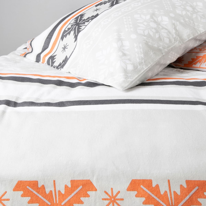 Jūsu iepirkumu grozs ir tukšs! Flaneļa gultasveļa 220x200 Ziemassvētku balti oranžas pelēkas sniegpārslas 31492/1 Flanel 3
