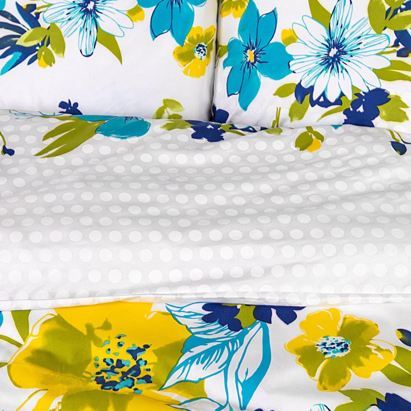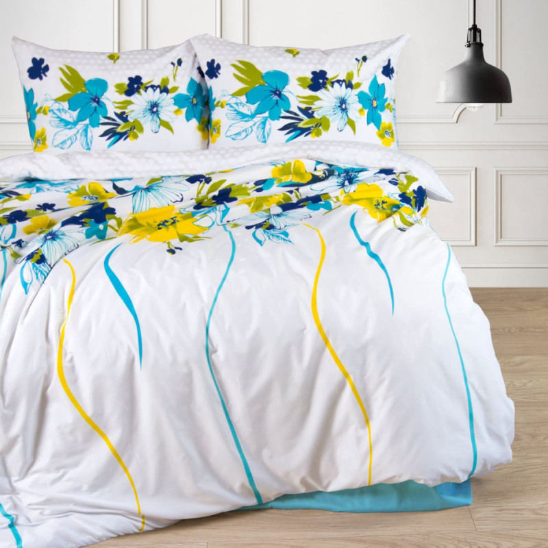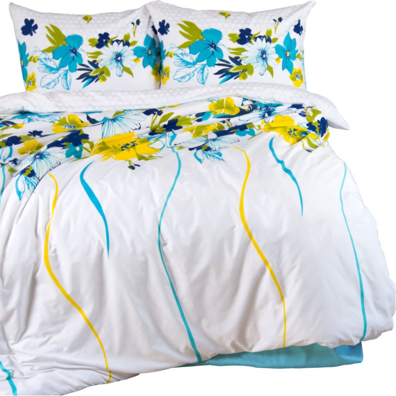 Jūsu iepirkumu grozs ir tukšs! Mikrošķiedras gultas veļa 140x200 balti tirkīza ziedi Tual 12205 ar 1 spilvendrānu 70x80
