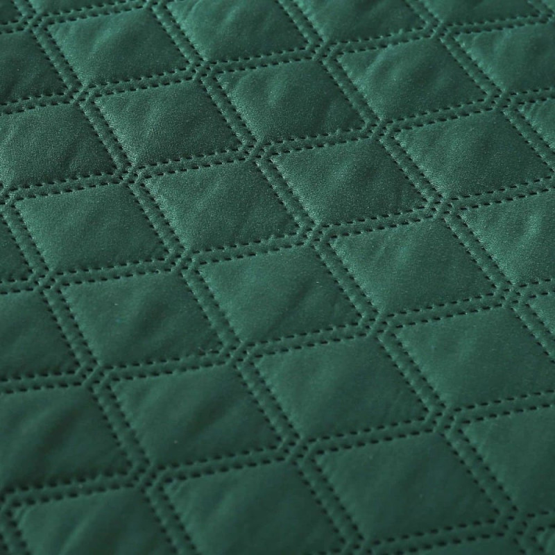 Jūsu iepirkumu grozs ir tukšs! Gultas pārklājs ar pomponiem 240x220 pudeles zaļš Pompoo dekoratīvie rombveida pomponi