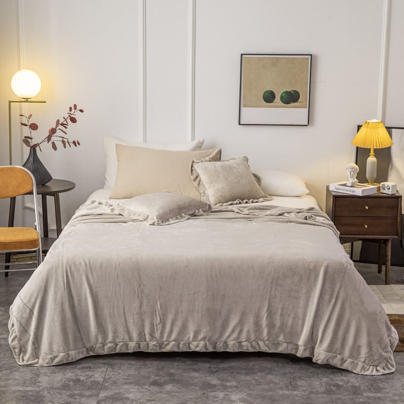 Jūsu iepirkumu grozs ir tukšs! Mikrošķiedras sega 200x220 Ruffly bēša ar volāniem