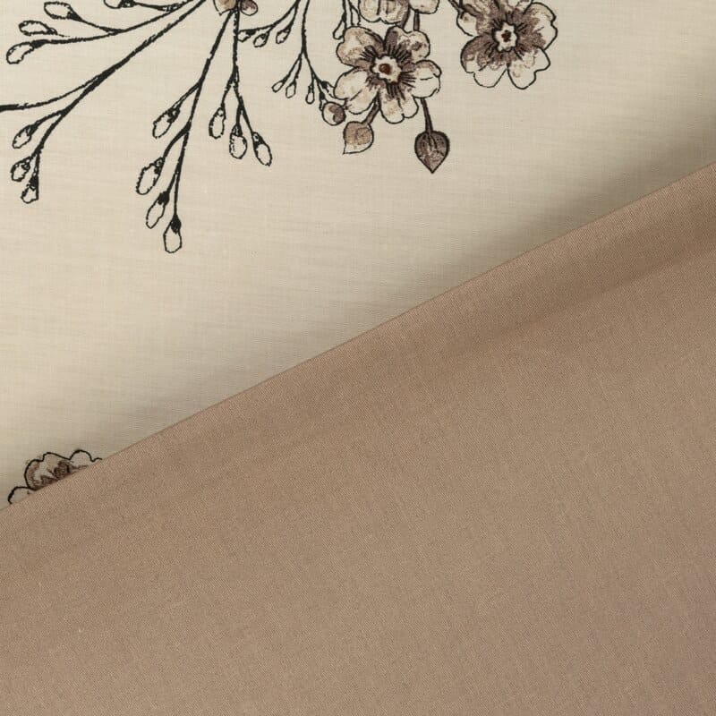Jūsu iepirkumu grozs ir tukšs! Satīna gultasveļa 140x200 Spring 06 Bēši ziedi ar vienu spilvendrānu