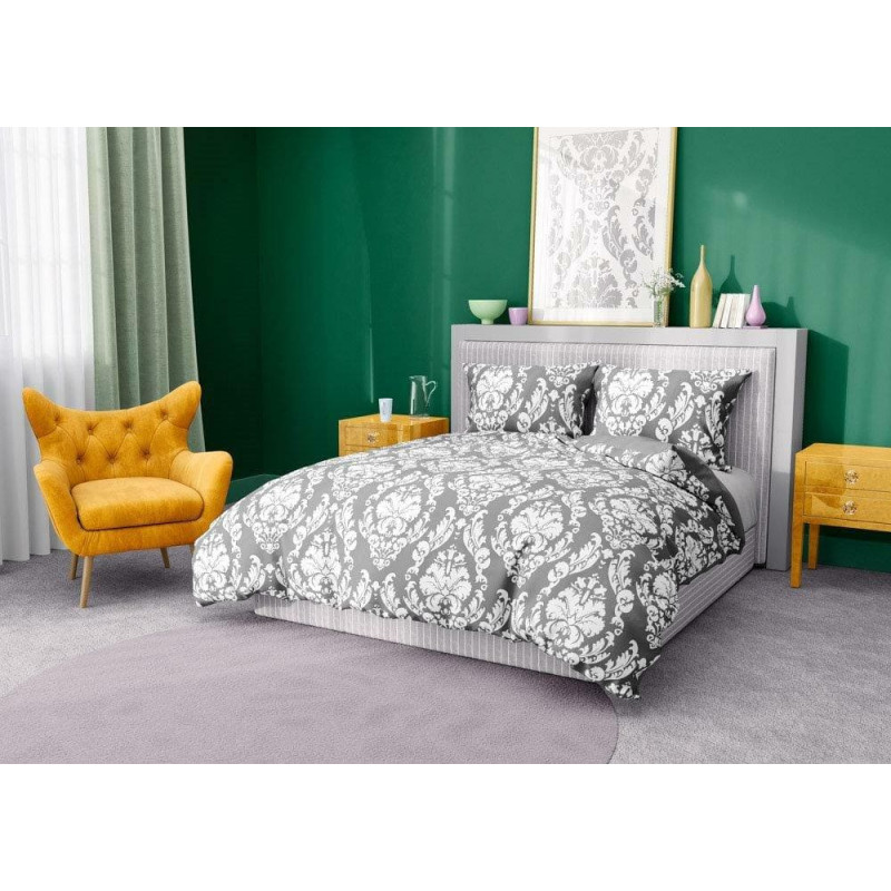 Jūsu iepirkumu grozs ir tukšs! Kokvilnas gultasveļa 180x200 Glamour 005 pelēka ar baltu ornamentu