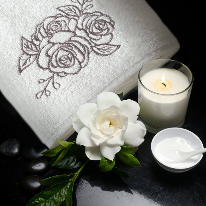 Jūsu iepirkumu grozs ir tukšs! Dvieļu komplekts kastītē 3gab.Rozālija krēmbēši ziedi 380g/m2