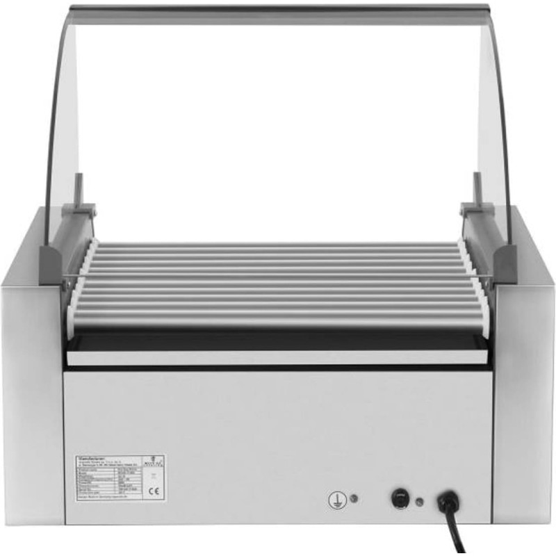 Jūsu iepirkumu grozs ir tukšs! Royal Catering Rullīšu grils ar vāku un sildīšanas atvilktni maizītēm 20 HotDog desiņas 2600W 230V