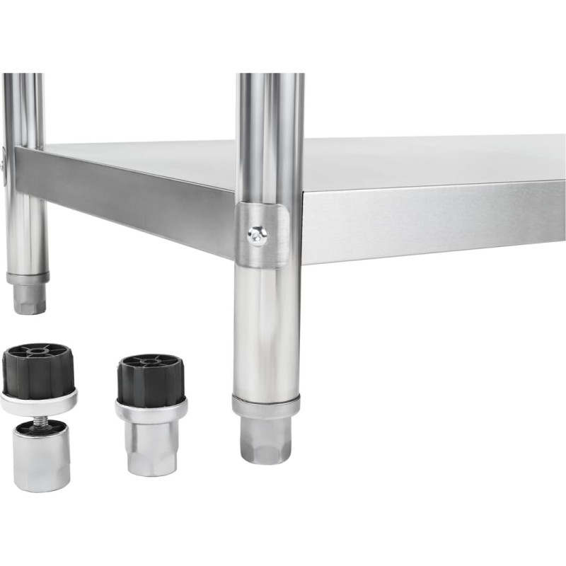 Jūsu iepirkumu grozs ir tukšs! Royal Catering Galda virtuves darba virsma ar apmali un plauktu Nerūsējošais tērauds 120x70cm