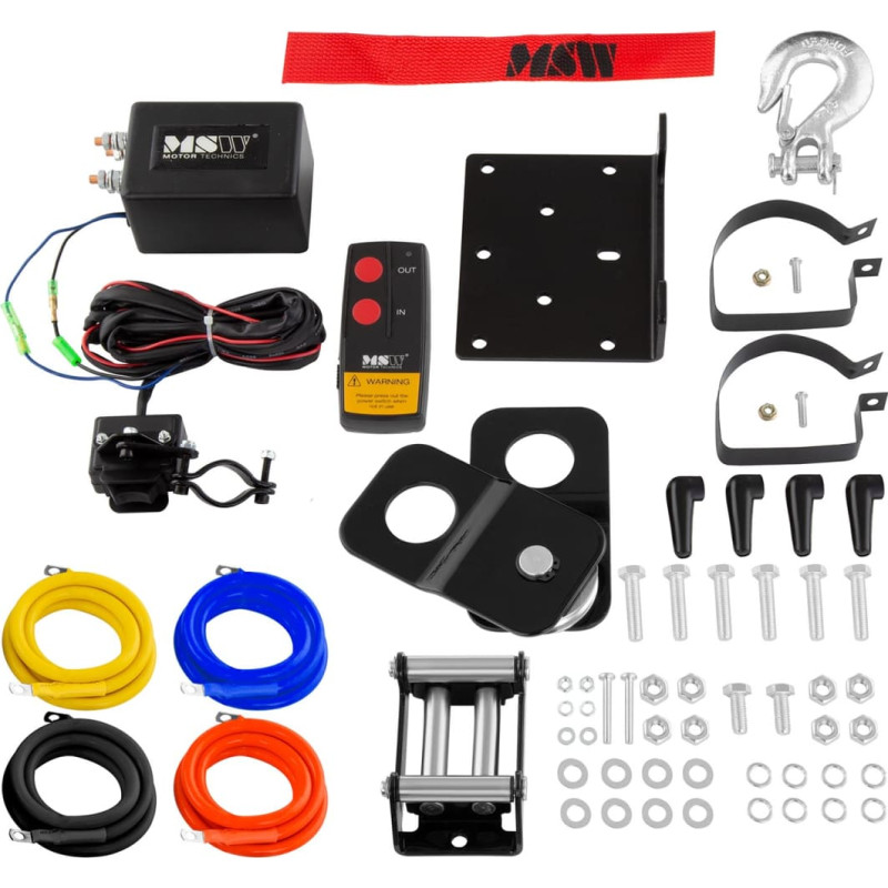 Jūsu iepirkumu grozs ir tukšs! MSW Vinča bezceļa auto vinča ar tālvadības trosi 15 m vilkšanas jauda 2040 kg + bloks 4 T