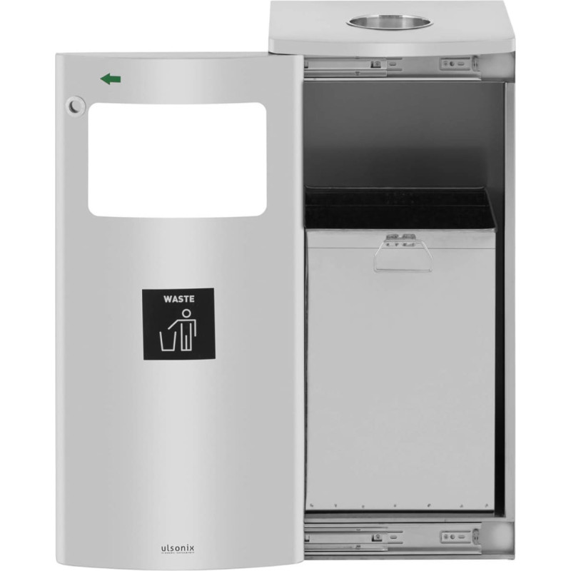 Jūsu iepirkumu grozs ir tukšs! Ulsonix Taisnstūra āra atkritumu tvertne ar pelnu trauku STEEL sudraba