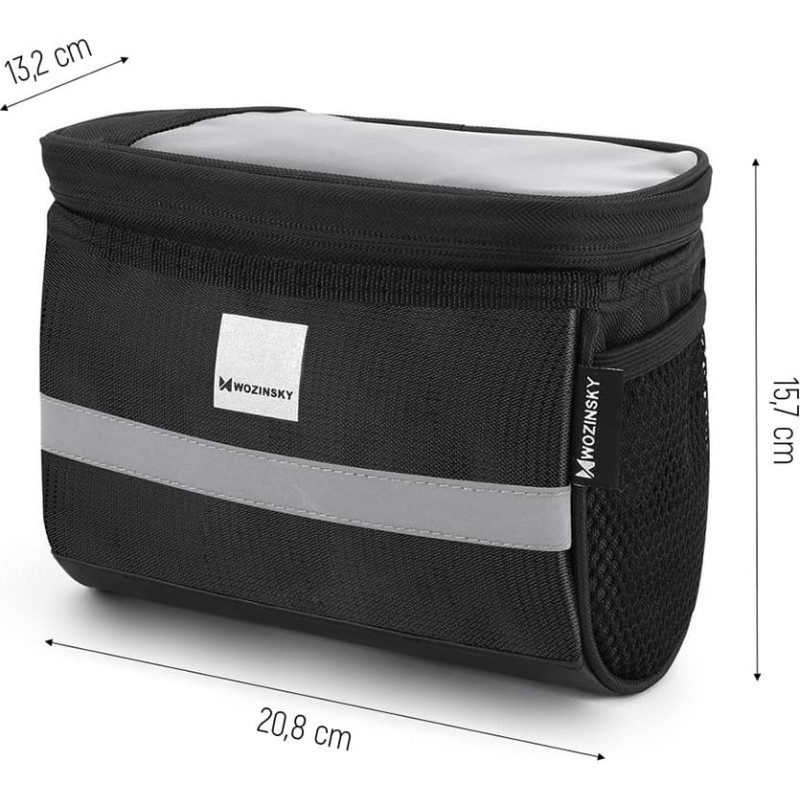 Jūsu iepirkumu grozs ir tukšs! Wozinsky Velosipēda stūres soma ar telefona maciņu 2 l melna