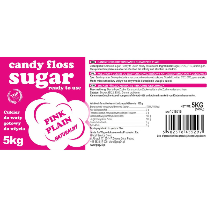 Jūsu iepirkumu grozs ir tukšs! Gsg24 Krāsains cukurs kokvilnas konfektes sarkanai dabīgai garšai 5kg