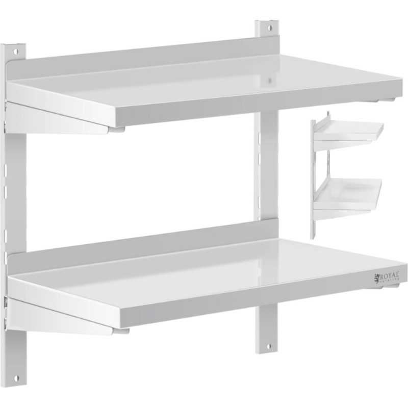 Jūsu iepirkumu grozs ir tukšs! Royal Catering Dubults regulējams sienas plaukts gastronomijas STEEL 60 x 30 cm