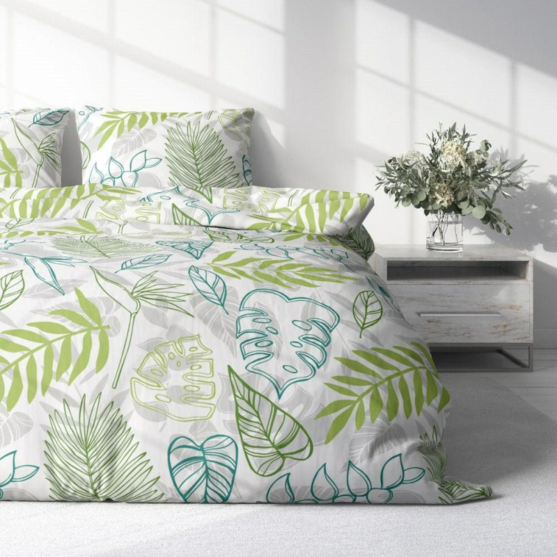 Jūsu iepirkumu grozs ir tukšs! Mikrošķiedras gultasveļa 160x200 Harmony 13 zaļas tirkīza lapas