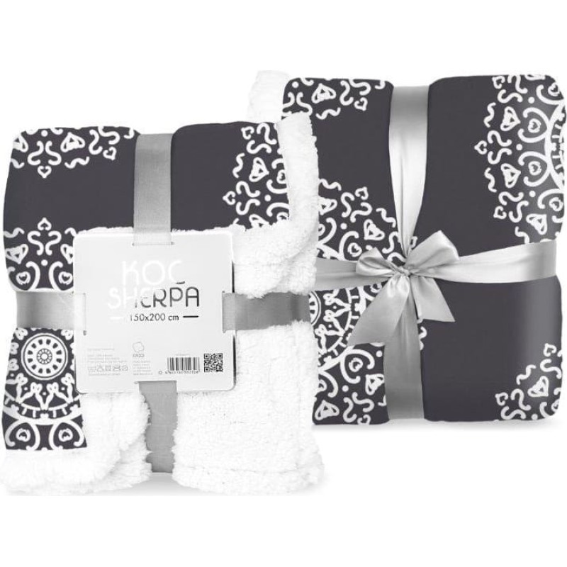 Jūsu iepirkumu grozs ir tukšs! Sega mikrošķiedras gultas pārklājs 150x200 Sherpa grafīta balta rozetes jēra divpusējs