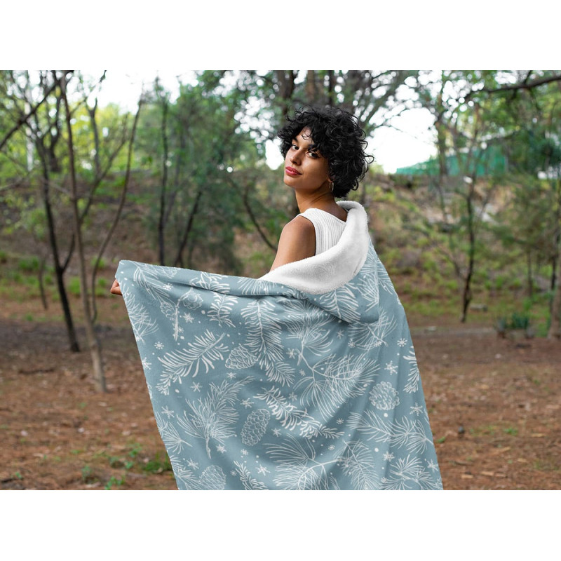 Jūsu iepirkumu grozs ir tukšs! Sega mikrošķiedras gultas pārklājs 150x200 šerpa piparmētru balti zariņi konusi jēra gaļas grozāmi