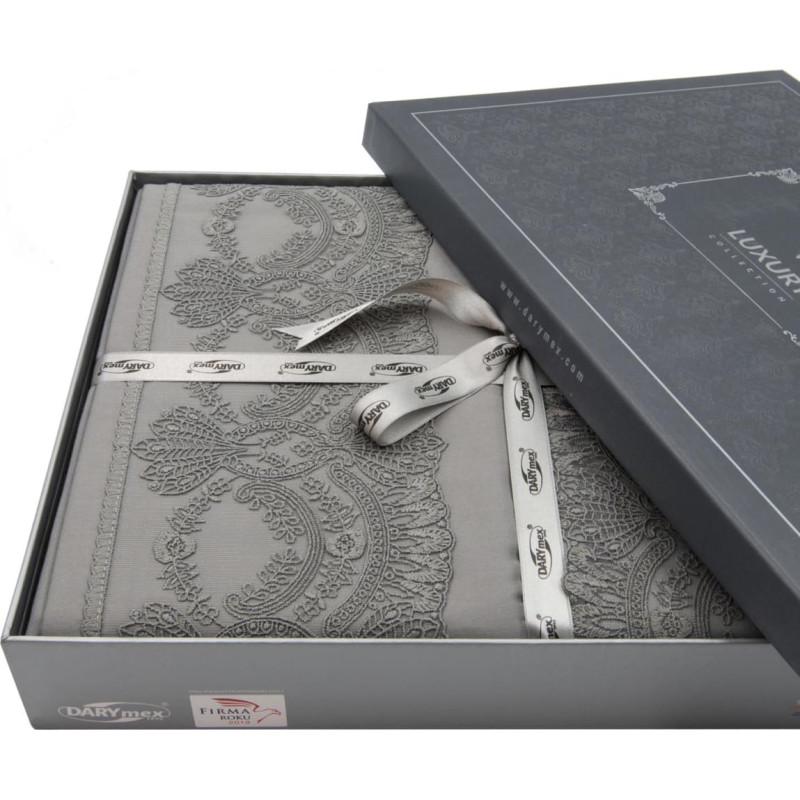 Jūsu iepirkumu grozs ir tukšs! Satīna gultas veļa 220x200 ar Guipure tērauda gipūru