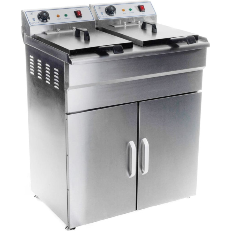 Jūsu iepirkumu grozs ir tukšs! Royal Catering Divu kameru fritieris ar skapi 400V - 2x10L