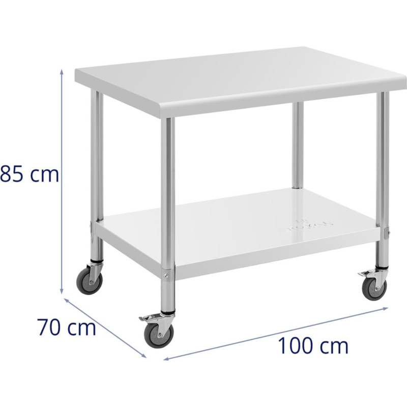 Jūsu iepirkumu grozs ir tukšs! Royal Catering Metāla gastronomijas galds uz riteņiem ar plauktu STEEL 70 x 100 cm