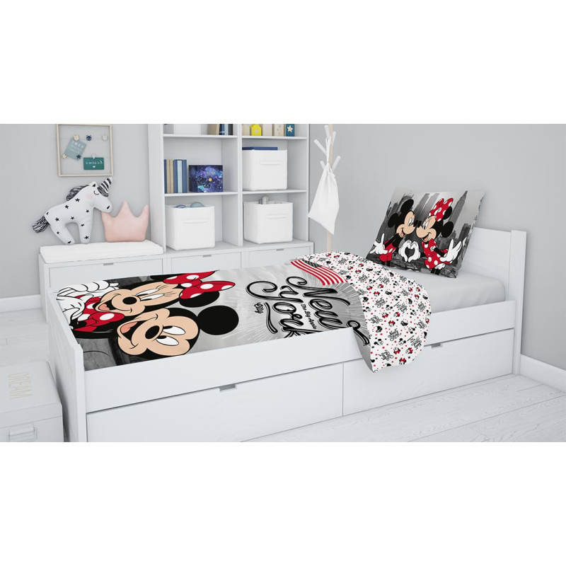Jūsu iepirkumu grozs ir tukšs! Kokvilnas gultas veļa 140x200 Mini un Mickey Mouse New York Love spilvendrāna 60x80 JF 02