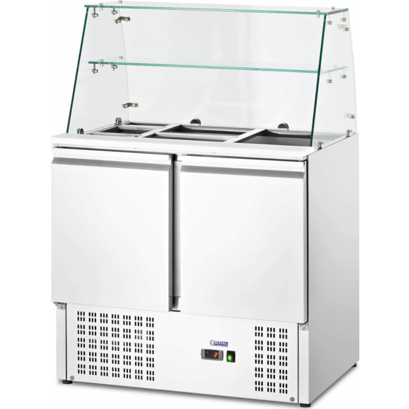 Jūsu iepirkumu grozs ir tukšs! Royal Catering Salātu refrižerators 2 durvju galds ar stikla pagarinājumu 7x GN 240 l
