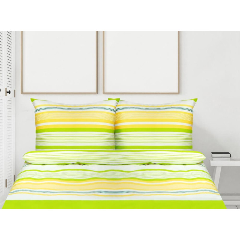 Jūsu iepirkumu grozs ir tukšs! Kokvilnas gultas veļa 220x200 Action, zaļas, dzeltenas svītras Premium Bielbaw 1