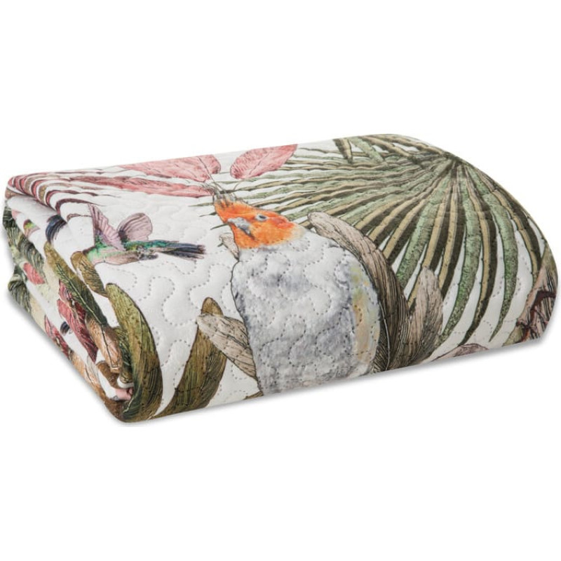 Jūsu iepirkumu grozs ir tukšs! Dekoratīvais gultas pārklājs 170x210 Papagaiļa zaļš rozā velūra papagaiļa lapas D91