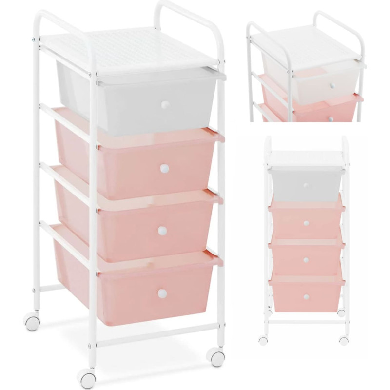 Jūsu iepirkumu grozs ir tukšs! Physa Kosmētikas ratiņi frizierim un vannas istabai ar 4 atvilktnēm 36 x 32 x 76 cm - rozā un baltā krāsā
