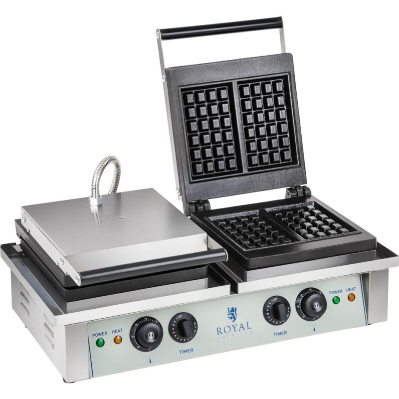 Jūsu iepirkumu grozs ir tukšs! Royal Catering Taisnstūra dubultā vafeļu cepeškrāsns 4 beļģu vafelēm