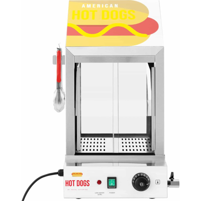 Jūsu iepirkumu grozs ir tukšs! Royal Catering Sildītājs, sildīšanas displejs 100 hotdogiem, 25 desu rullīši, 1000W