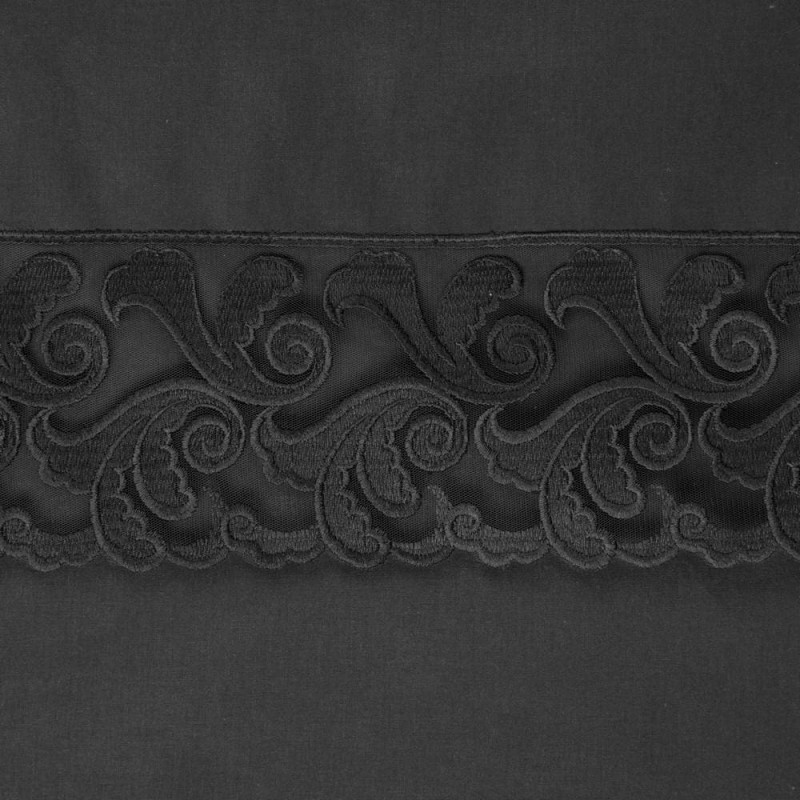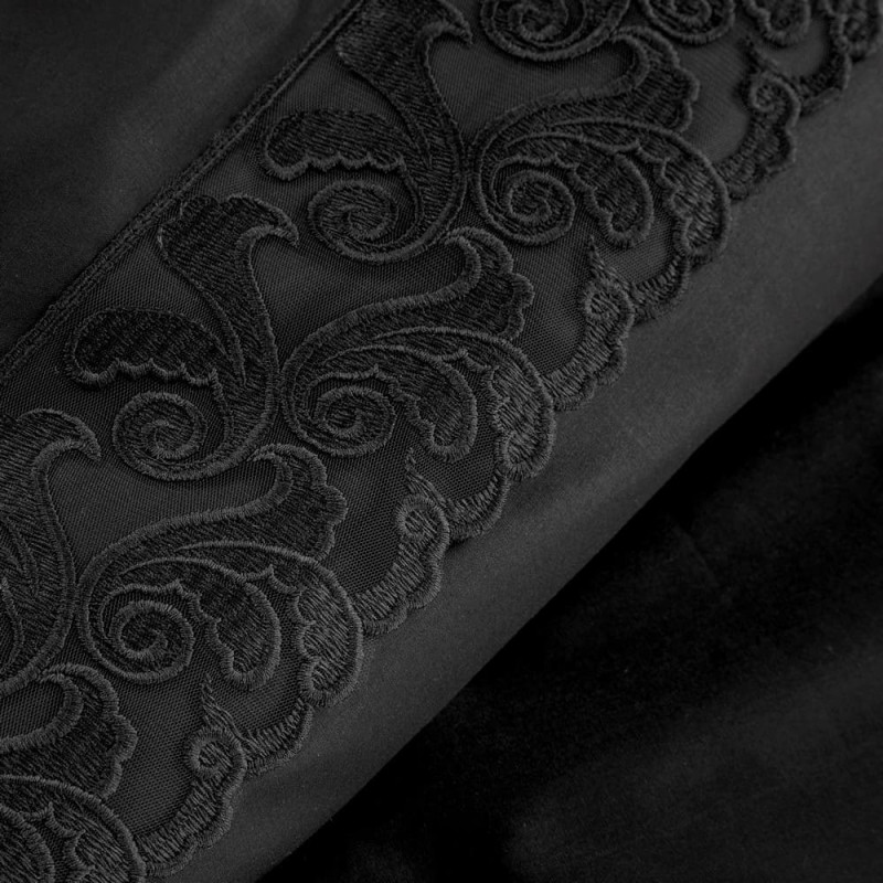 Jūsu iepirkumu grozs ir tukšs! Kokvilnas gultas veļa 160x200 Lana 3 melna ar mežģīnēm, izšūta, vienkrāsains Premium