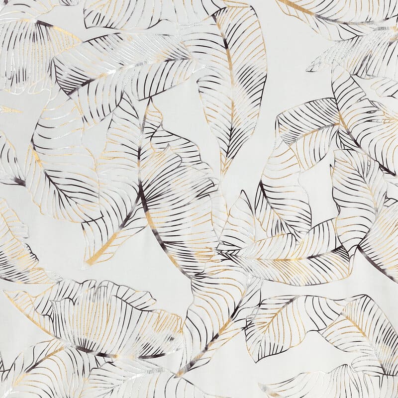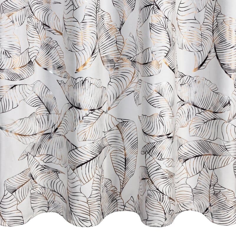 Jūsu iepirkumu grozs ir tukšs! Aizkars 135x250 Odeta balts pelēks ar šampanieša apdruku, gatavs ar cilpām