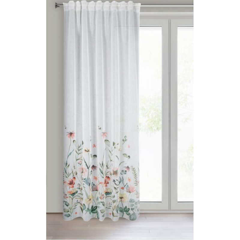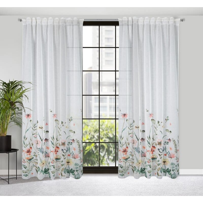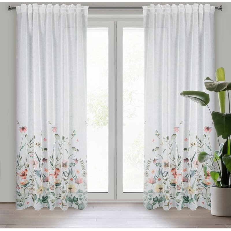 Jūsu iepirkumu grozs ir tukšs! Aizkars 140x270 Dolly balti zaļi ziedi gatavi uz E11 lentes