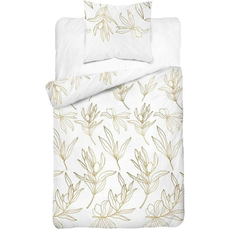 Jūsu iepirkumu grozs ir tukšs! Satīna gultas veļa 140x200 4448 B baltā zelta lapas ar vienu spilvendrānu Home Satin 126