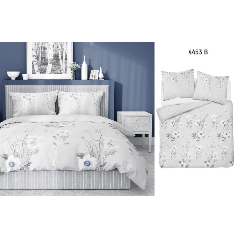 Jūsu iepirkumu grozs ir tukšs! Satīna gultasveļa 140x200 4453 B pelēki zili pļavas ziedi ar vienu spilvendrānu Home Satin 126