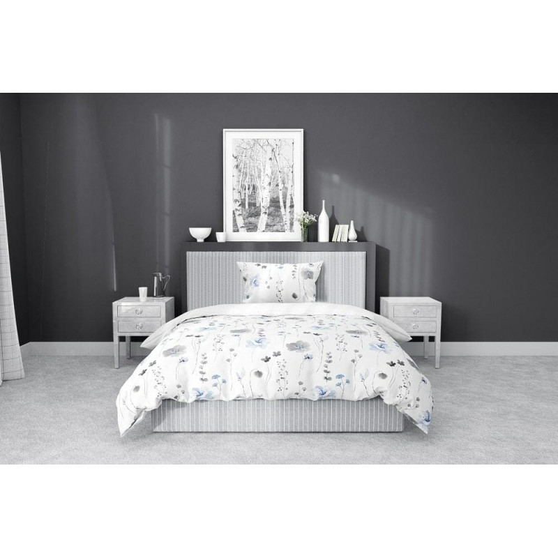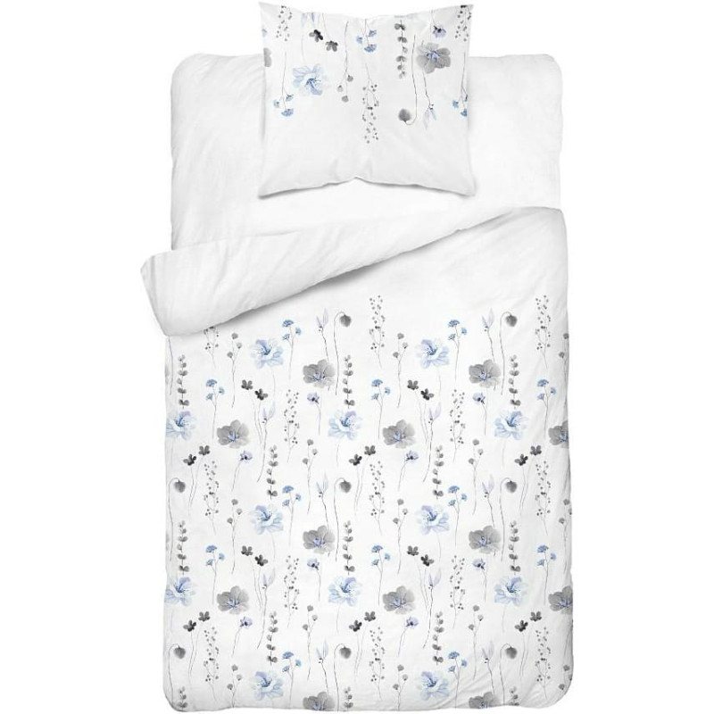 Jūsu iepirkumu grozs ir tukšs! Satīna gultasveļa 140x200 4454 B balti pelēki zili pļavas ziedi ar vienu spilvendrānu Home Satin 126