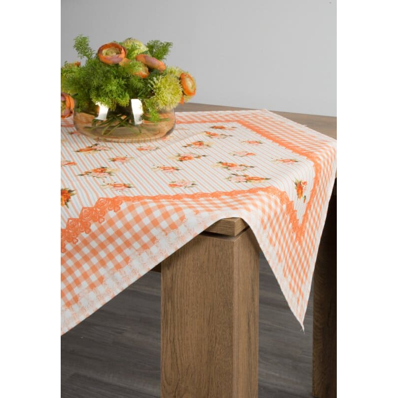 Jūsu iepirkumu grozs ir tukšs! Galdauts 85x85 Rozes, krēmkrāsas, oranži, rūtaini ziedi