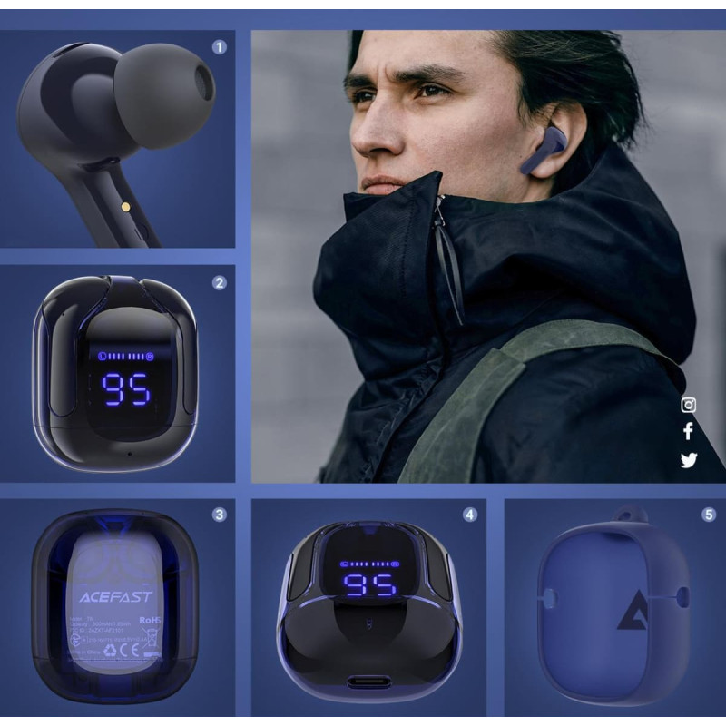 Jūsu iepirkumu grozs ir tukšs! Acefast In-ear TWS Bluetooth bezvadu austiņas, zilas