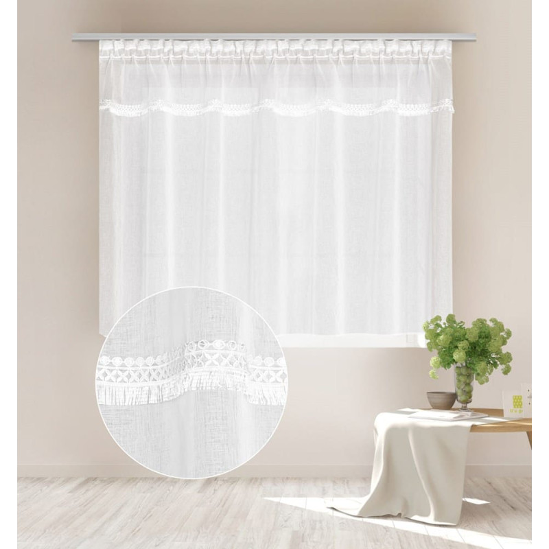 Jūsu iepirkumu grozs ir tukšs! Boho baltais aizkars 140x250 gatavs ar S23 starplikām