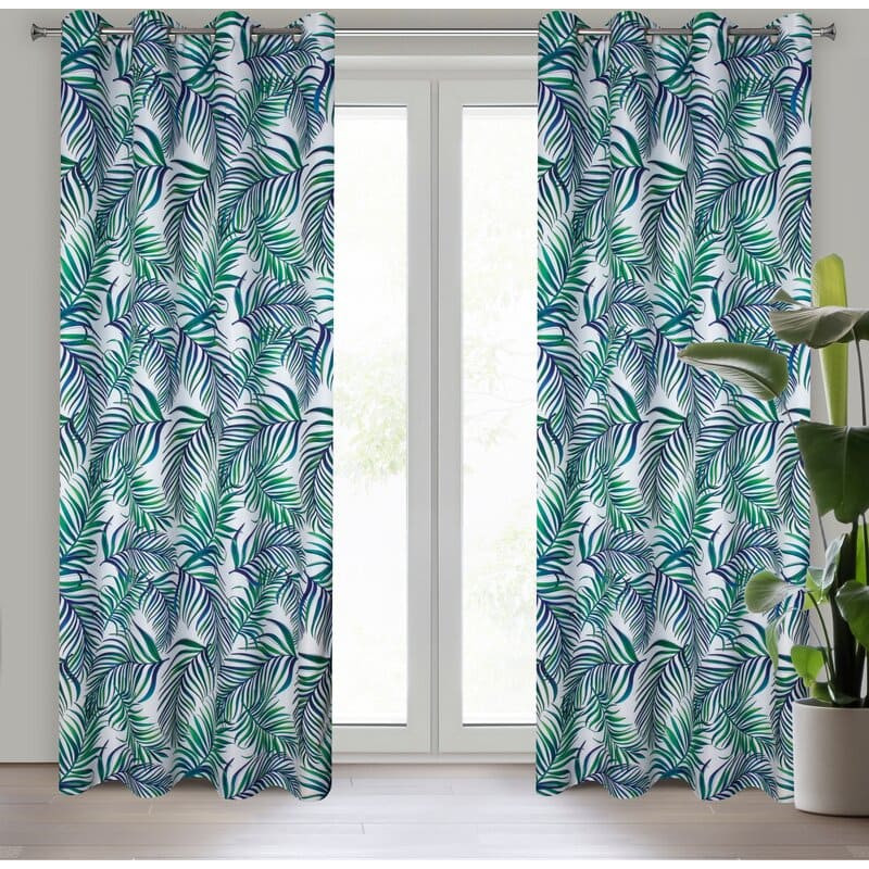 Jūsu iepirkumu grozs ir tukšs! Aizkars 140x250 Palmu lapas, tirkīza zaļš, gatavs ar cilpām