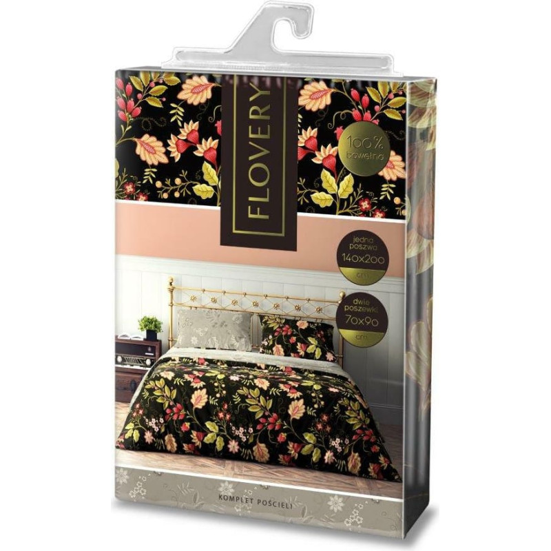 Jūsu iepirkumu grozs ir tukšs! Kokvilnas gultasveļa 220x200 Puķaini 004 ziedi melni bēši krāsaini 23