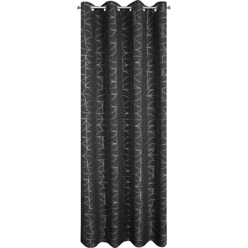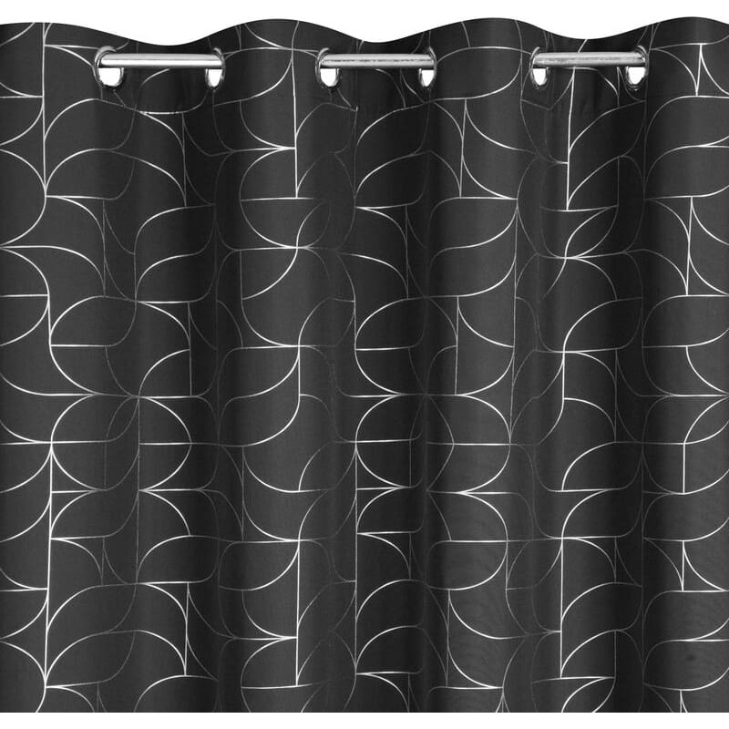 Jūsu iepirkumu grozs ir tukšs! Aizkars 140x250 Evi melns un sudrabs ar spīdīgu ģeometrisku apdruku, gatavs ar cilpām