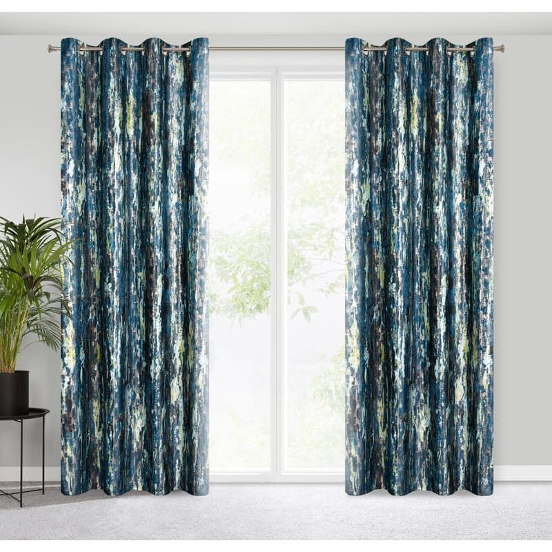 Jūsu iepirkumu grozs ir tukšs! Aizkars 140x250 Grace, tumši zils samts ar metālisku apdruku, gatavs ar cilpām