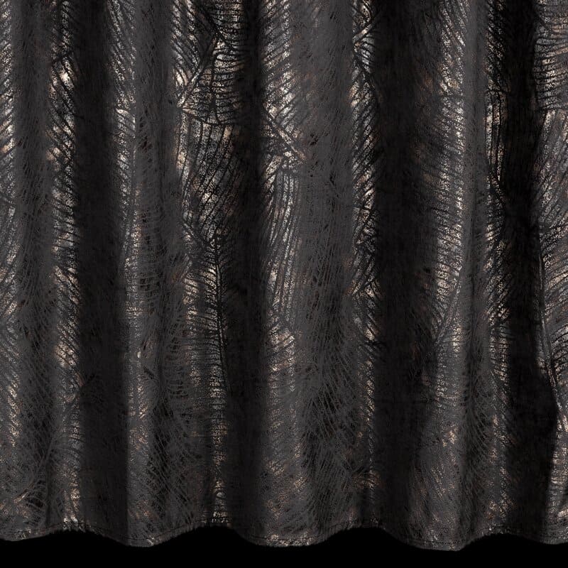 Jūsu iepirkumu grozs ir tukšs! Aizkars 135x270 Tulia melns šampanieša samts ar iekrāsotu spīdīgu apdruku, gatavs uz lentes