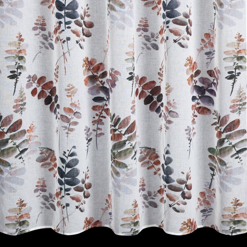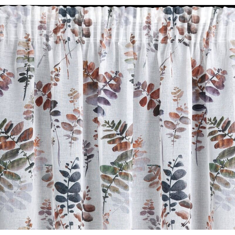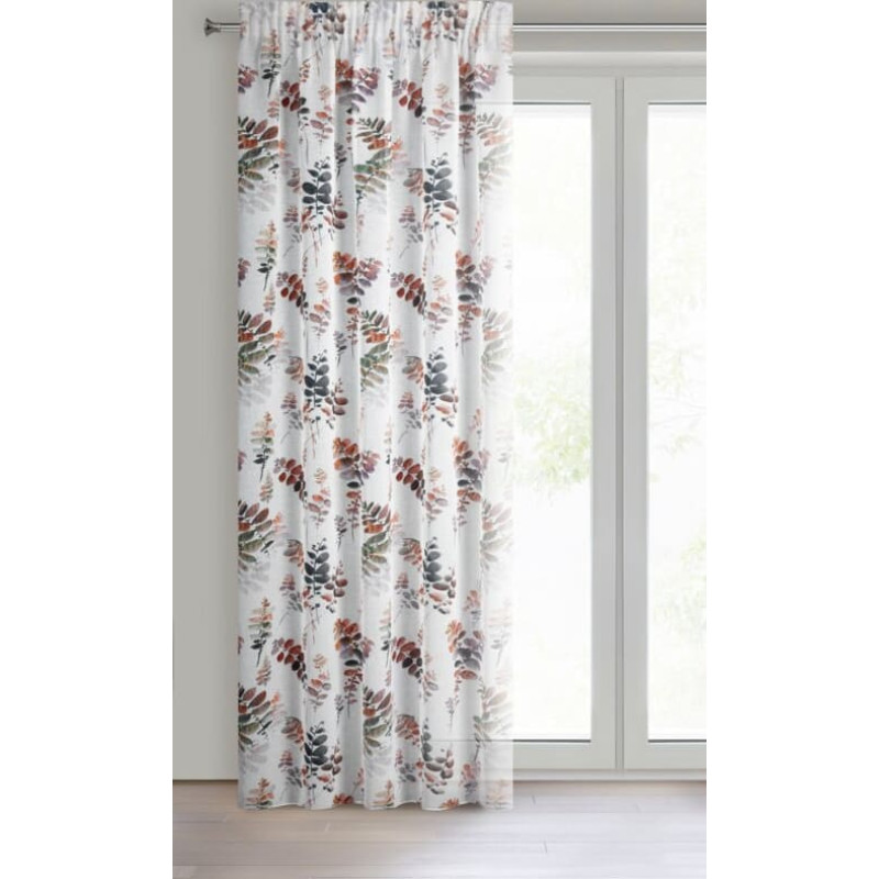 Jūsu iepirkumu grozs ir tukšs! Aizkars 140x270 Marina balts tērauds no etamīna ar botānisku motīvu, gatavs uz lentes