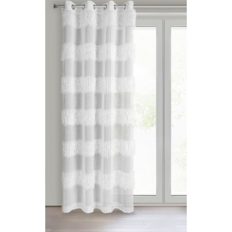Jūsu iepirkumu grozs ir tukšs! Gatavs aizkars 140x250 Margaret balts ar svītru aplikāciju, gatavs uz cilpām