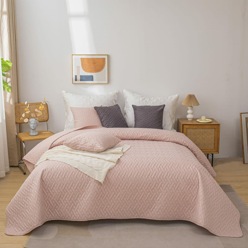 Jūsu iepirkumu grozs ir tukšs! Dekoratīvais gultas pārklājs 240x260 Dash pulveris rozā ģeometrisks I23